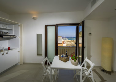 Our Standard Studios cover an area ranging of 24 square metres. They consist of a living room with fully equipped kitchenette, a bathroom with shower and a sleeping area. Fully furnished, with air conditioning, flat screen TV, Wi – Fi and bathroom with shower. They include a window with charming sea views.
